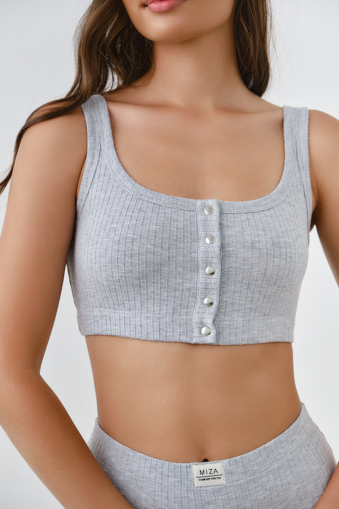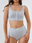 Состоит из бралетта на широких бретелях с застежкой на кнопки и трусиков-слипов.