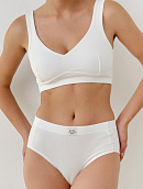 Комплект из мягкого хлопкосодержащего трикотажа (кулирка с лайкрой Пенье), состоит из бралетта на широких бретелях и трусиков Slip.