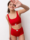Комплект из мягкого хлопкосодержащего трикотажа (кулирка с лайкрой Пенье), состоит из бралетта на широких бретелях с двойным передом и трусиков Slip.