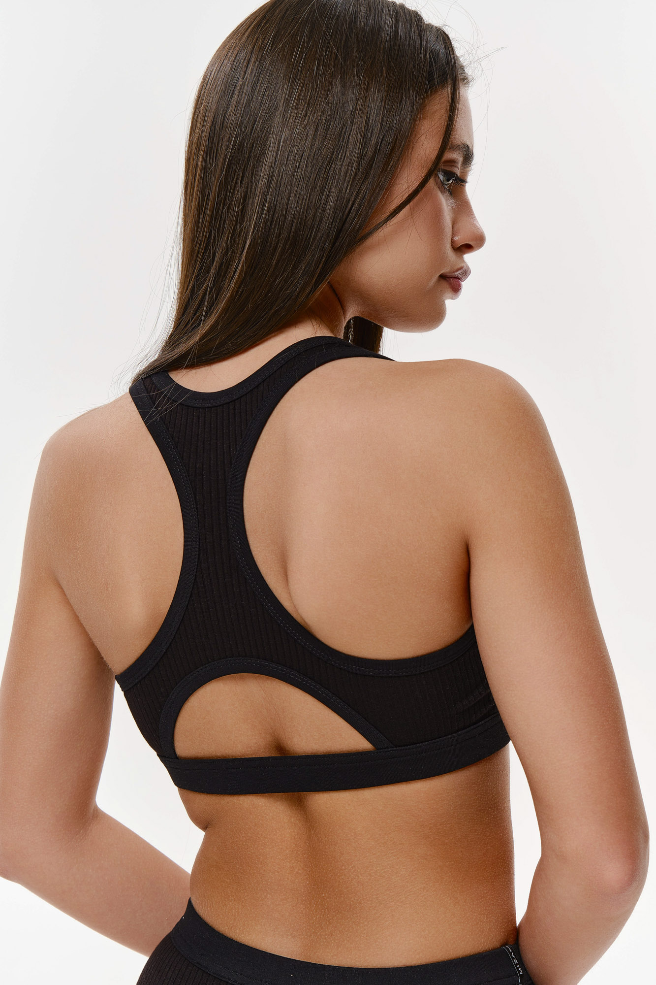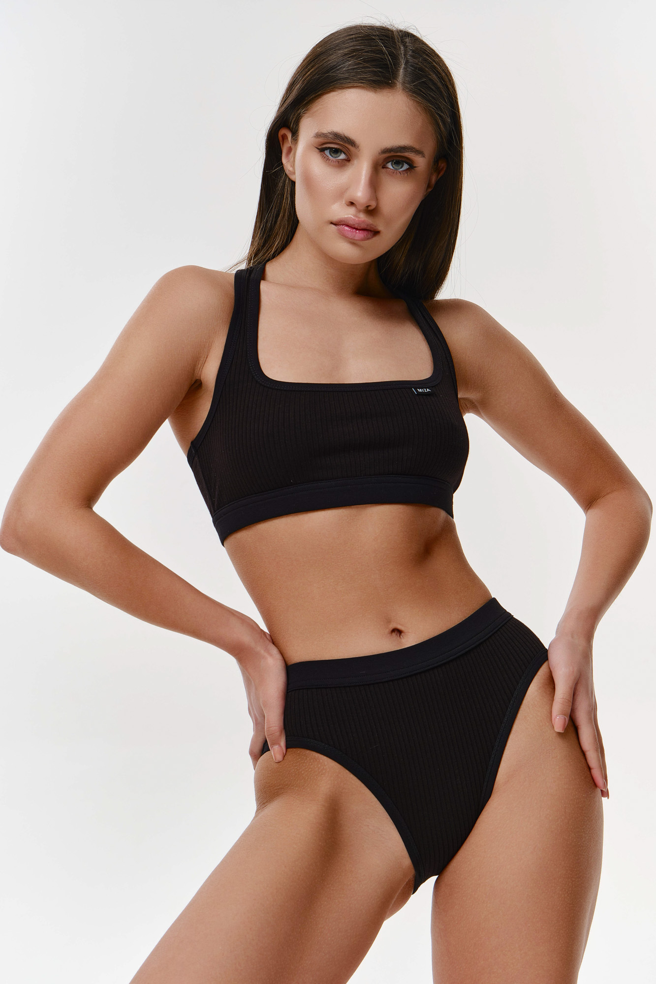 Состоит из бралетта на широких бретелях с открытой спинкой и