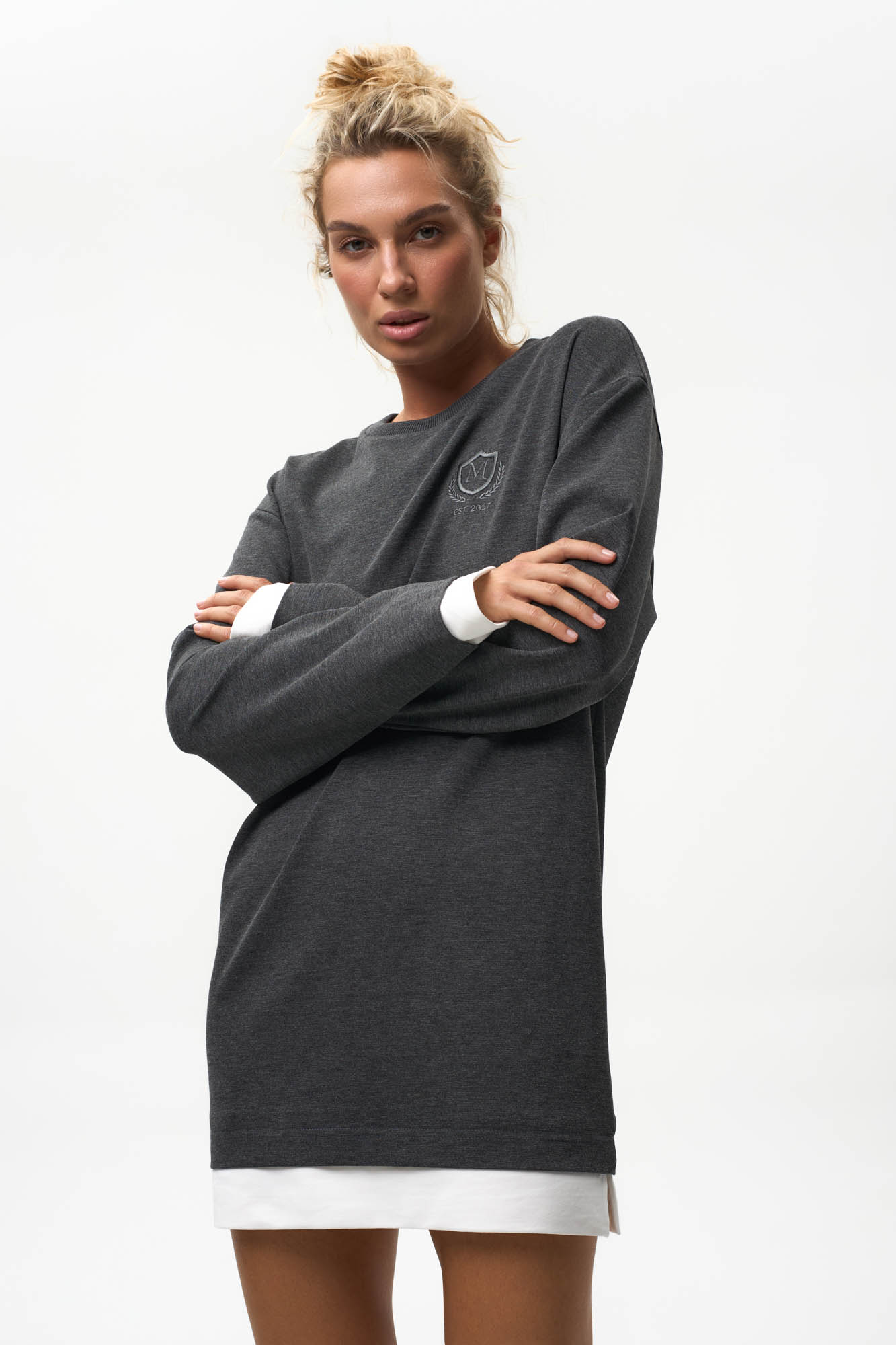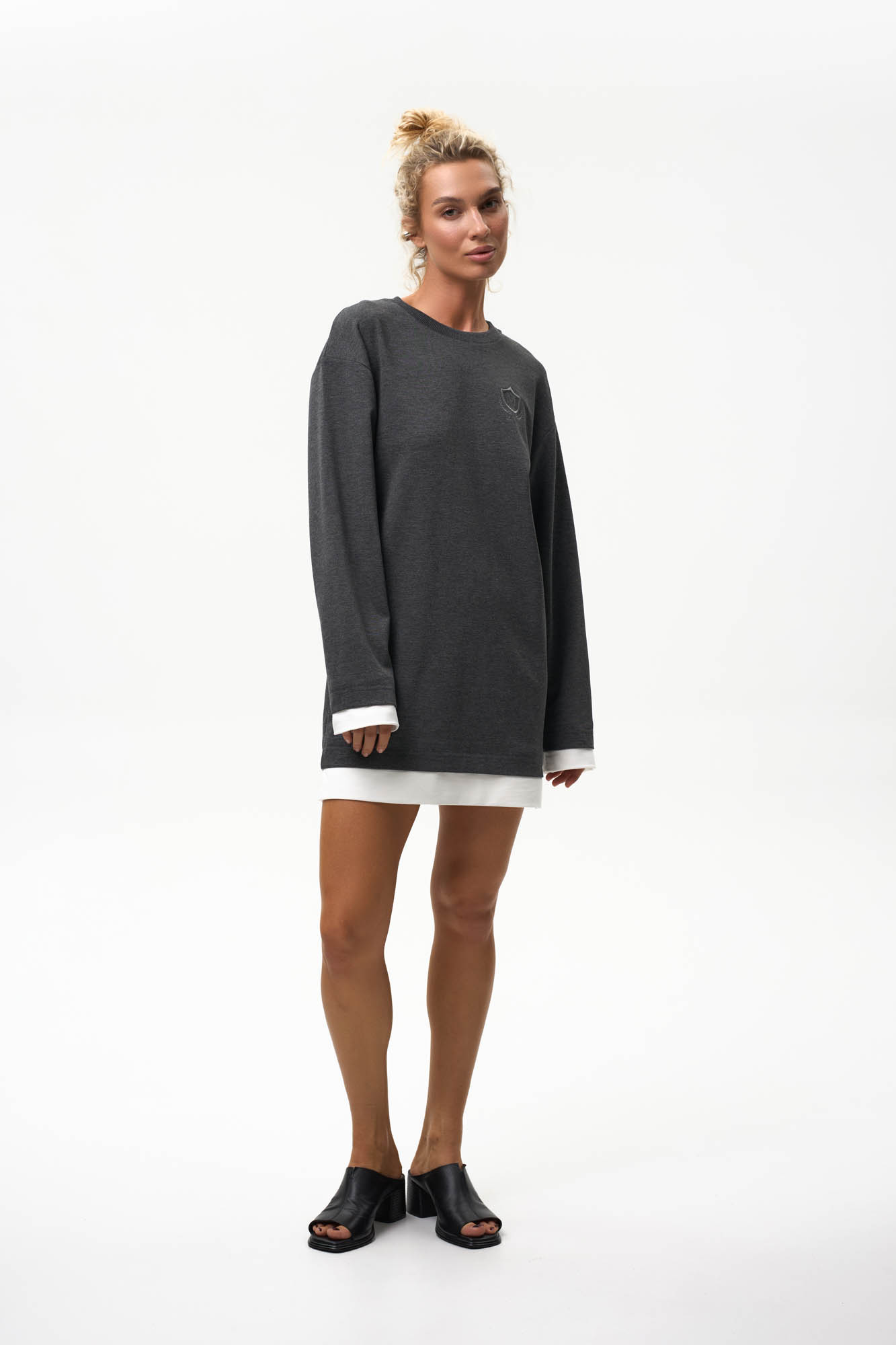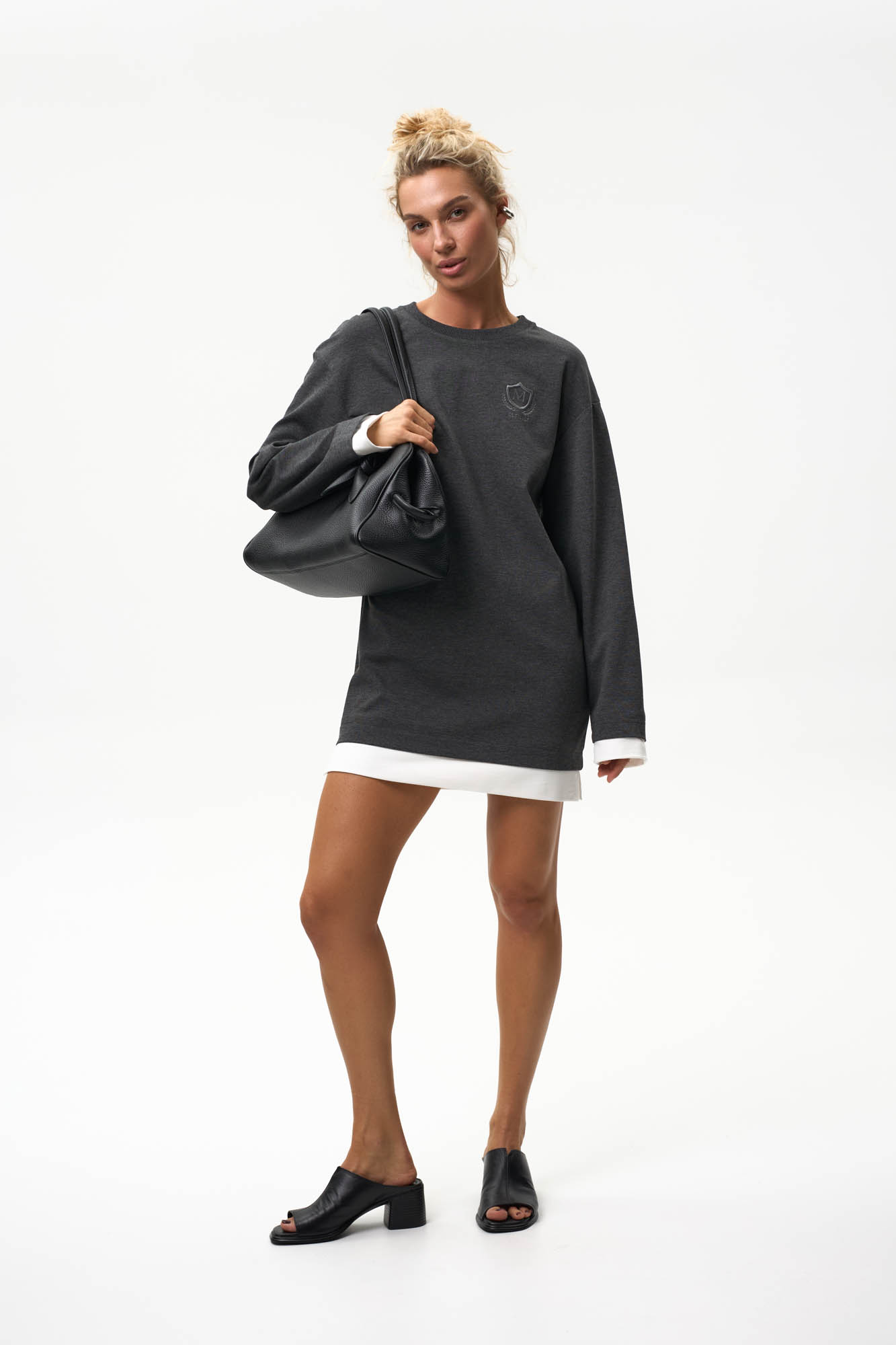 Платье прямого кроя в длине mini из премиального трикотажного материала.