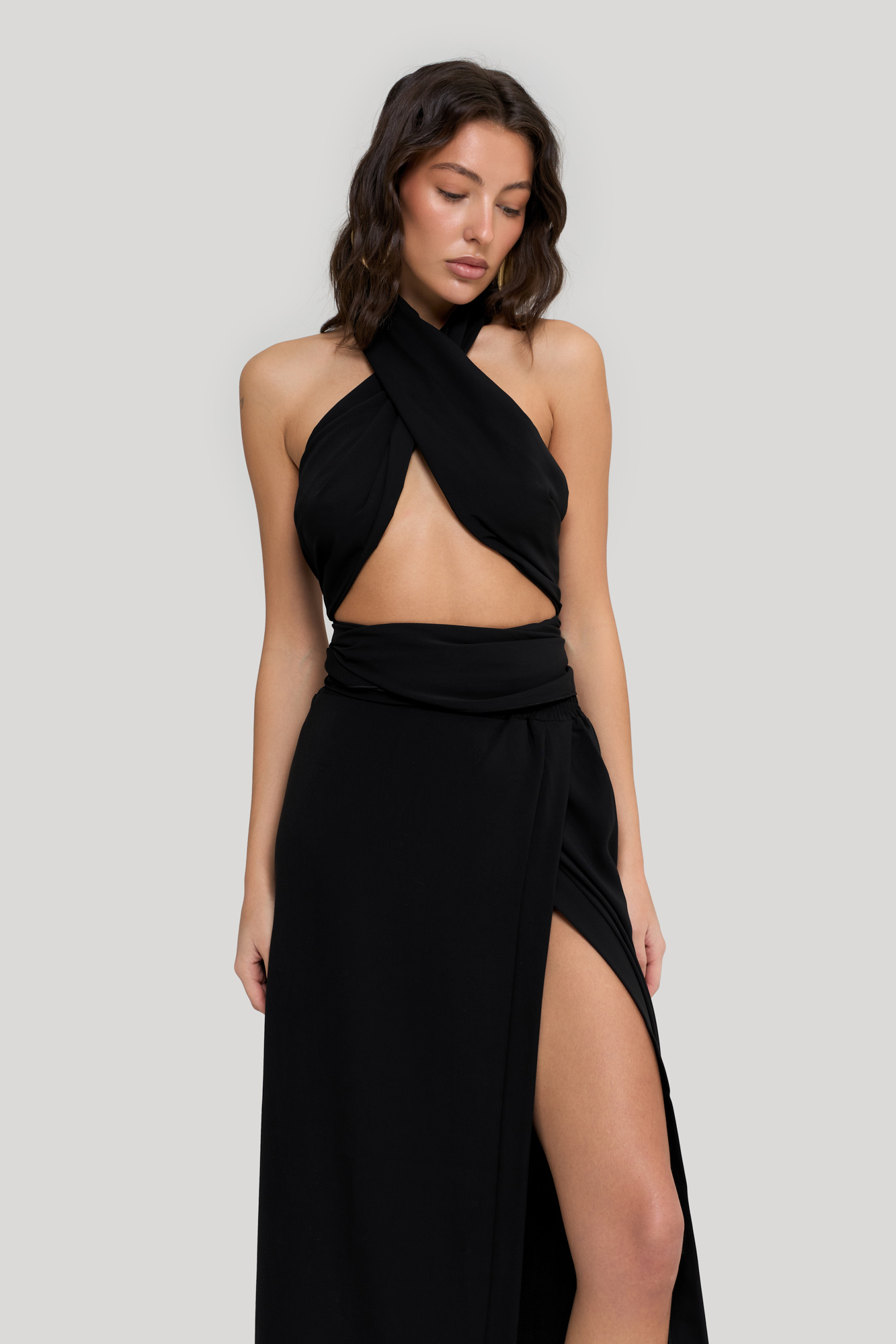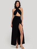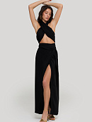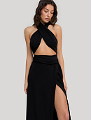 С одной стороны высокий разрез, придающий образу женственность и игривость.