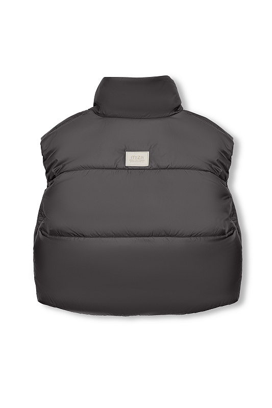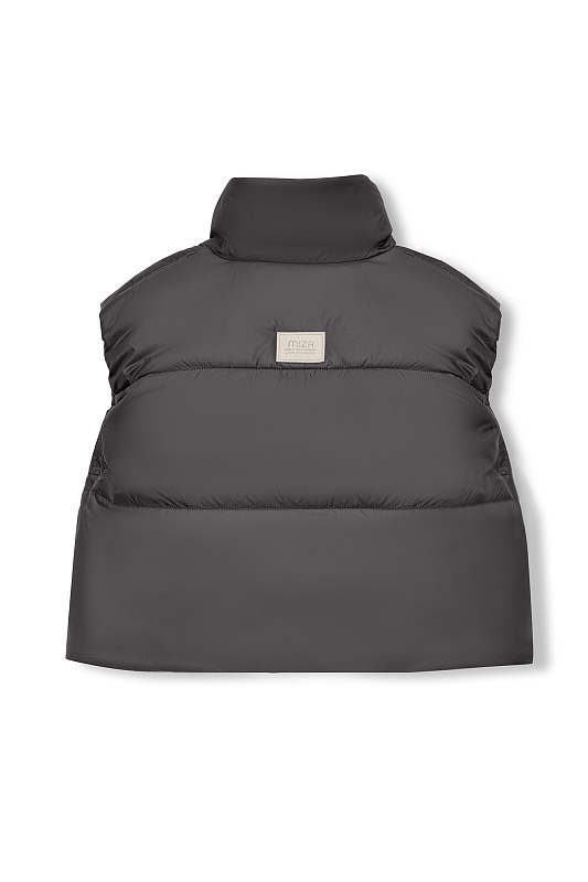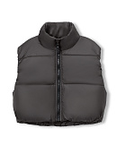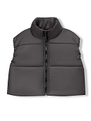 Укороченный жилет прямого кроя, с застежкой на молнию и воротником-стойкой.
